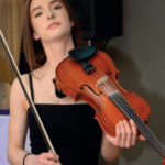 Oleksandra Chekalenko, Violine. Sie wurde 2009 in Odessa geboren, war dort Schülerin an der Stolyarsky Musikschule und ist Preisträgerin von mehr als 30 professionellen Musikwettbewerben. Nach ihrem Umzug nach Deutschland setzte sie hier ihre Konzerttätigkeit fort.